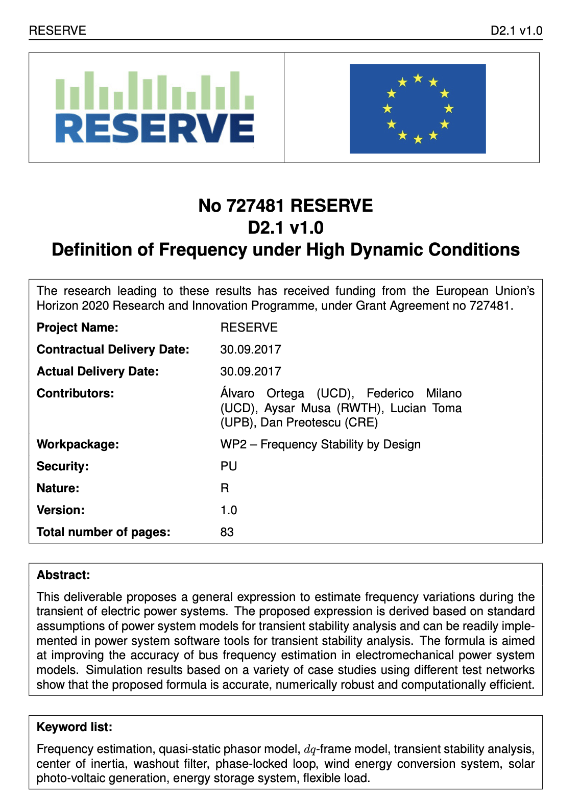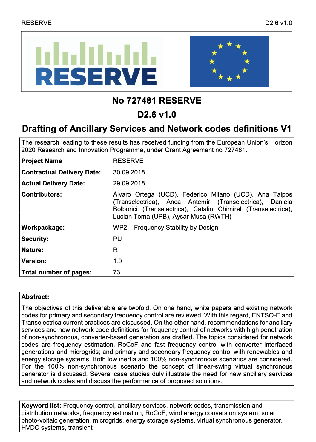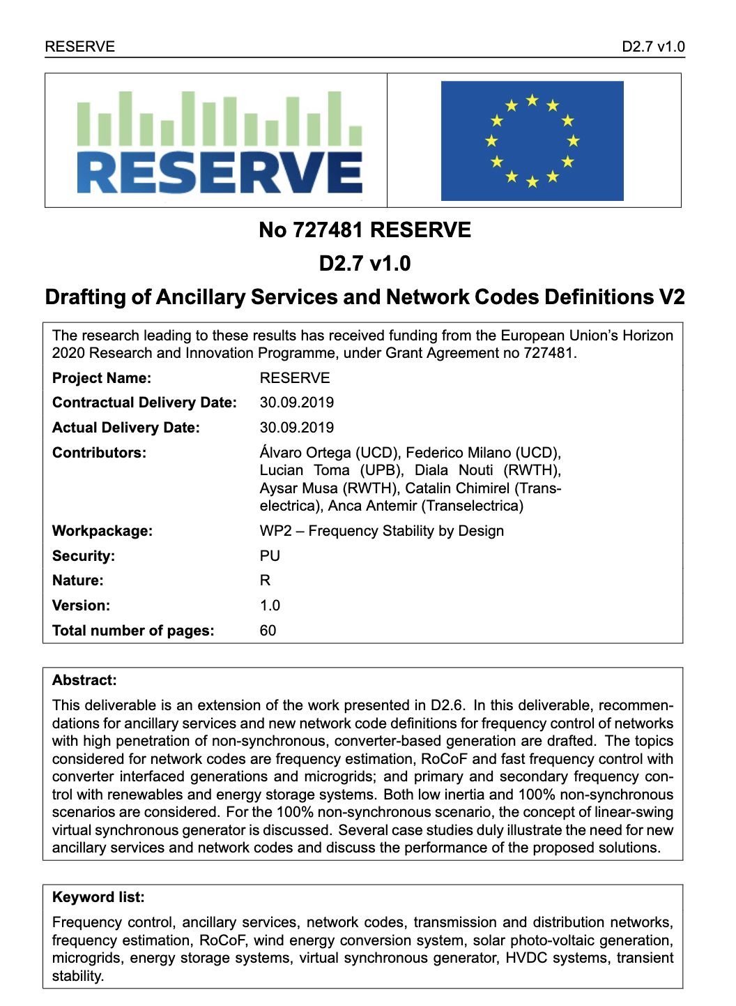H2020 Project RESERVE, ID 727481, European Community,